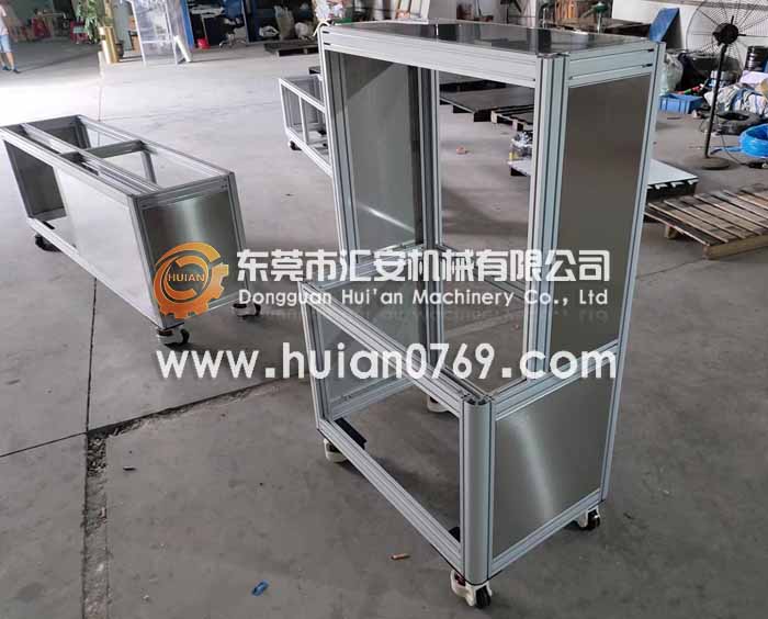 不銹鋼門和封板搭配的鋁材架子,也是蠻耐看的,只是客戶這福馬輪的設計有點讓我摸不到頭腦了,架子不大,用了100F的福馬輪,有那么一點點不協調,不過客戶有他的考量,咱只管按要求加工生產,成品還是蠻不錯的。
